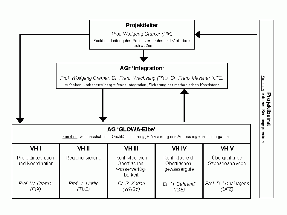Organigramm zur Projektkoordination GLOWA-Elbe II